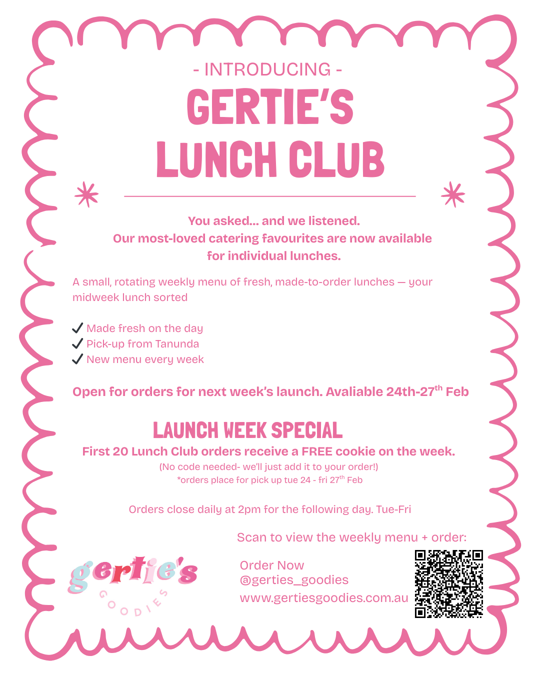 Individual lunches. Freshly made. Weekly Menu.